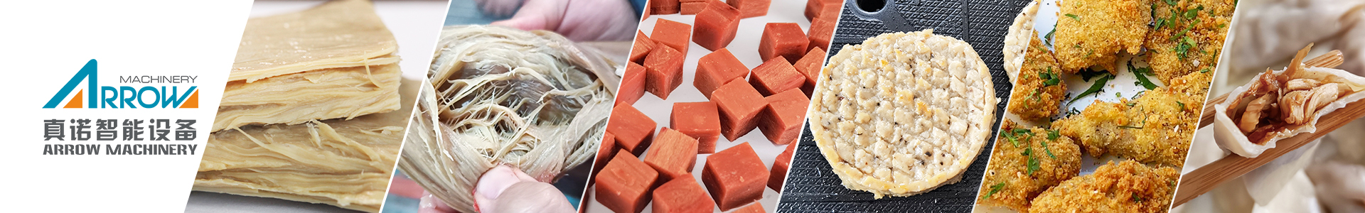 Esta línea de proceso se desarrolla y fabrica con base en nuestra experiencia y en la combinación de maquinaria avanzada de origen extranjero. Utiliza harina de soja desgrasada y harina de cacahuete como principales materias primas. Tras mezclar, extruir, cortar y secar, la harina adquiere una textura fibrosa en capas. Los productos terminados tienen un alto contenido proteico, aspecto y sabor a carne, absorben fácilmente aceite, agua y sabor, y carecen de colesterol y grasa animal. Por ello, se utilizan ampliamente en la industria cárnica, la producción de comida rápida, la producción de alimentos congelados y todo tipo de snacks y alimentos vegetarianos.